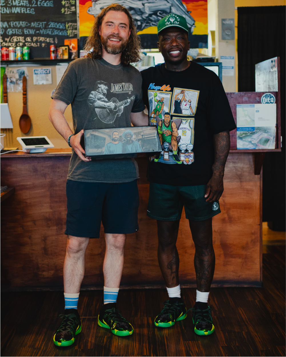 Because every EQLZ release is a story you can hold, each pair arrives inside a comic-book shoebox co-authored by Nate. Panel by panel, it tracks his ascent from Seattle blacktops to NBA spotlights, his adventure into boxing, the family ties that ground him, and — most powerfully — his comeback after a kidney transplant. A full-bleed portrait of Robinson with his donor. Shane Cleveland, turns the packaging into a beacon for athlete-health awareness worldwide.